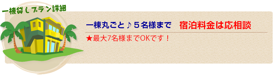 気の合う友人同士、卒業旅行、2世帯で…などなど、お客様それぞれの宮古島観光プランに合わせてご利用しやすい一棟貸しプラン!