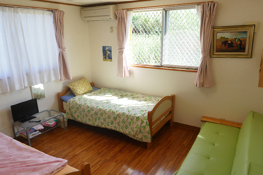 ゲストハウス地球人の休憩所は、お部屋の窓から眺めるキビ畑が印象的な、ほっこりとおくつろぎいただける、そんなゲストハウスです。ご家族、ご友人同士でアットホームにご利用いただけるベッド付きの全3部屋。静かに時が流れる周辺環境と爽やかな風を感じながら、宮古島観光の拠点として、どうぞごゆっくりお過ごしください。